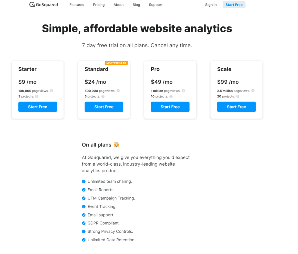 GoSquared offers several pricing plans, each designed to scale with your business. From startups just embarking on their digital journey to established businesses steering through the vast data seas, there’s a plan for every level of need. Embarking on a journey with GoSquared begins with a free trial, allowing businesses to navigate the platform’s capabilities before committing their budget.