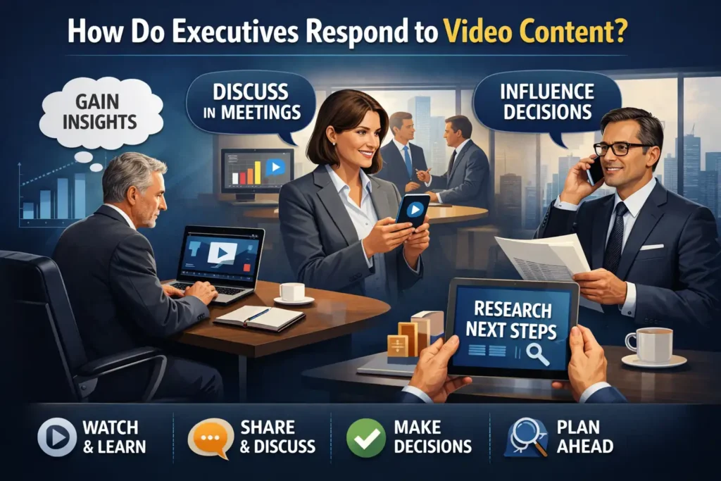 Executives are highly responsive to video content, with 65% visiting a marketer’s website after viewing a branded video. This behavior highlights the influence of video in the decision-making process at the executive level.