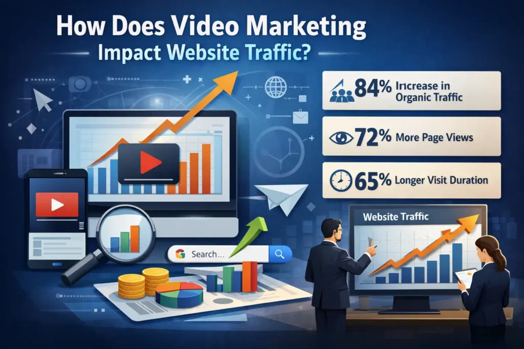 Video marketing has a significant impact on website traffic, with 84% of B2B marketers reporting an increase. Videos can drive traffic by attracting viewers through engaging and shareable content.