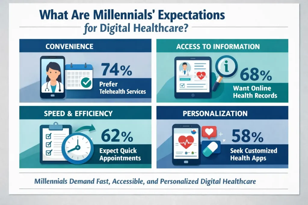 Millennials, who make up a significant portion of the patient population, have high expectations for digital healthcare experiences. About 60% of millennials expect a digital healthcare experience, which includes online booking, telehealth services, and mobile health applications. This demographic values convenience, accessibility, and quick access to healthcare information.