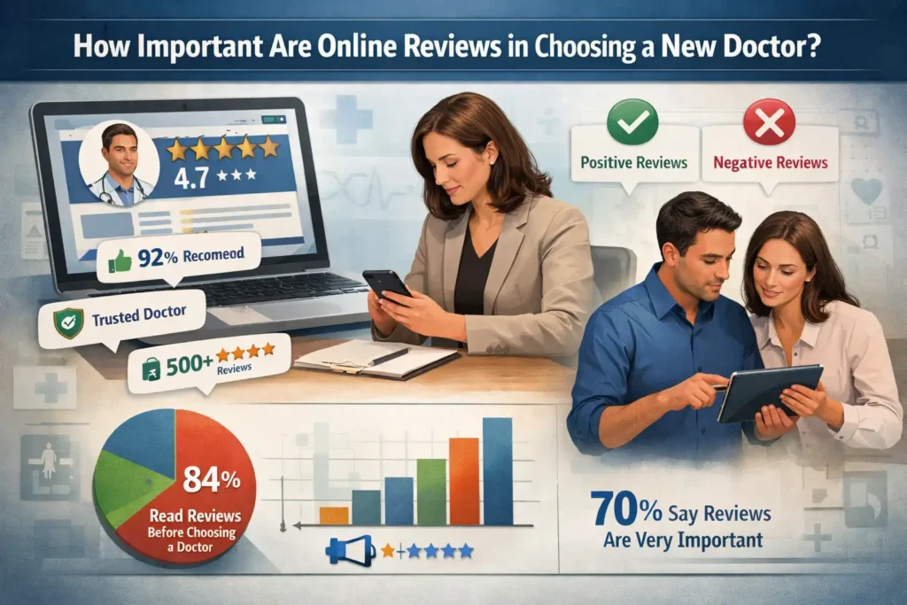 A substantial 77% of patients use online reviews as their first step in finding a new doctor. This statistic highlights the critical role that online reputation plays in healthcare marketing. Positive reviews can attract new patients, while negative reviews can deter them.