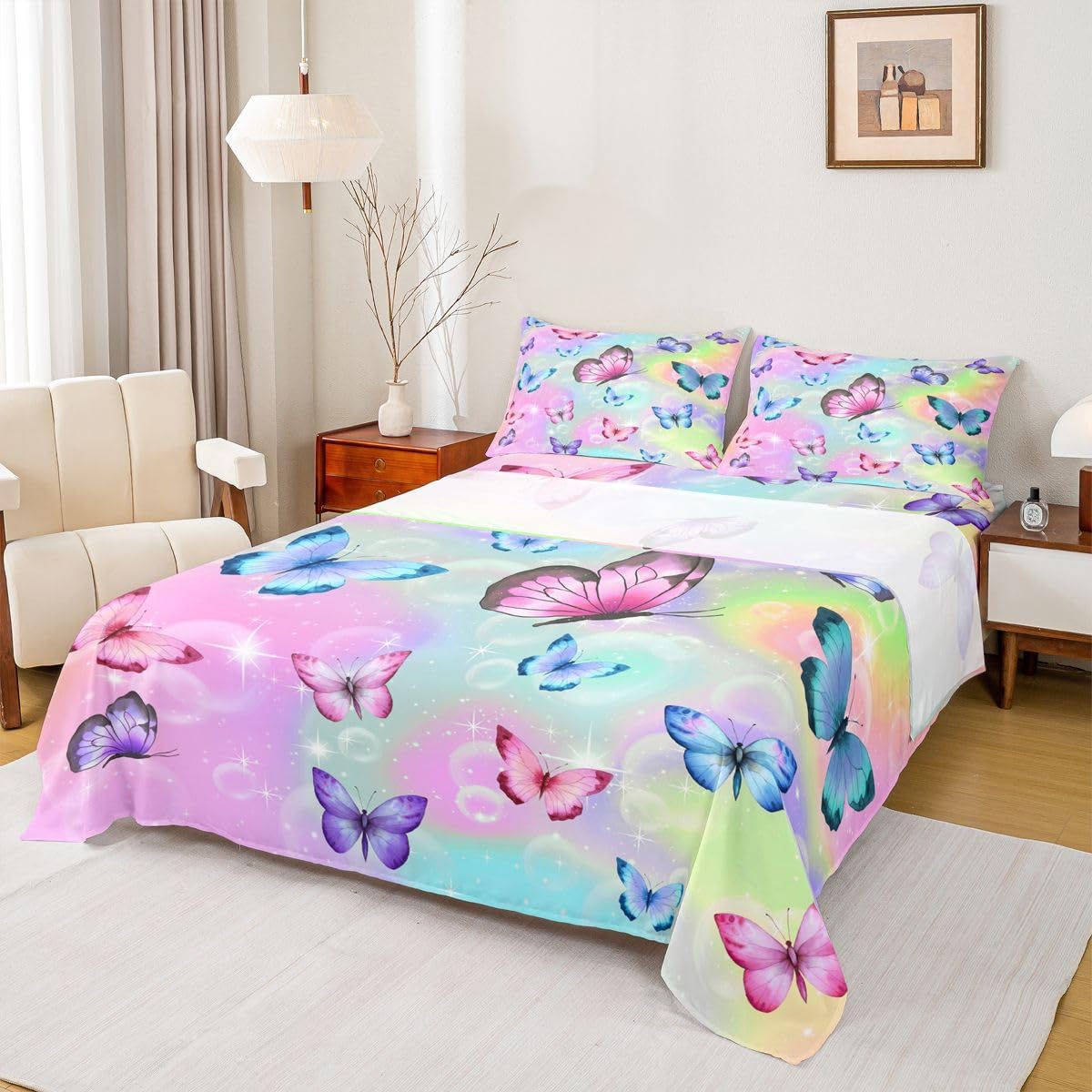 Welcome to our store We have specialized in home textile for many years,We are contribute to provide good customer service and products Size Information Twin Size : 1 Fitted Sheet 39""x75""x16"" and 1 Flat Sheet 96""x66"" and 1 Pillowcase 20""x30"" Full Size : 1 Fitted Sheet 54""x75""x16"" and 1 Flat Sheet 96""x81""and 2 Pillowcases 20""x30"" Queen Size : 1 Fitted Sheet 60""x80""x16"" and 1 Flat Sheet 102""x90""and 2 Pillowcases 20""x30"" King Size : 1 Fitted Sheet 78""x80""x16"" and 1 Flat Sheet 106""x90"" and 2 Pillowcases 20""x36"" Versatility We have many kinds of styles for you to choose,You can easily find a product that suits the style of your room The item is not only Great for your bedroom, guest room, or Rv,but also a great Present for holidays or anniversaries,birthday for your families,friends,Kids Modern Design The luxury aesthetic bedding sheets are made by reactive printing and dyeing process,The pattern is clear,the color is lasting and bright,which will not fade after repeated washing Personalized As a manufacturer of digital printed home textiles, we follow current trends and bring you the latest and stylish home textile products The item will make the room decorated in exquisite taste Our Wish We sincerely hope you'll love the bed set