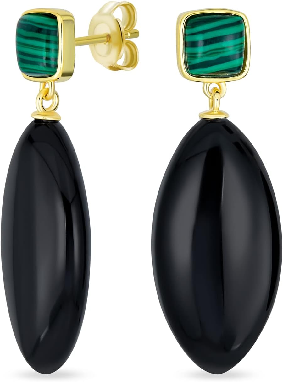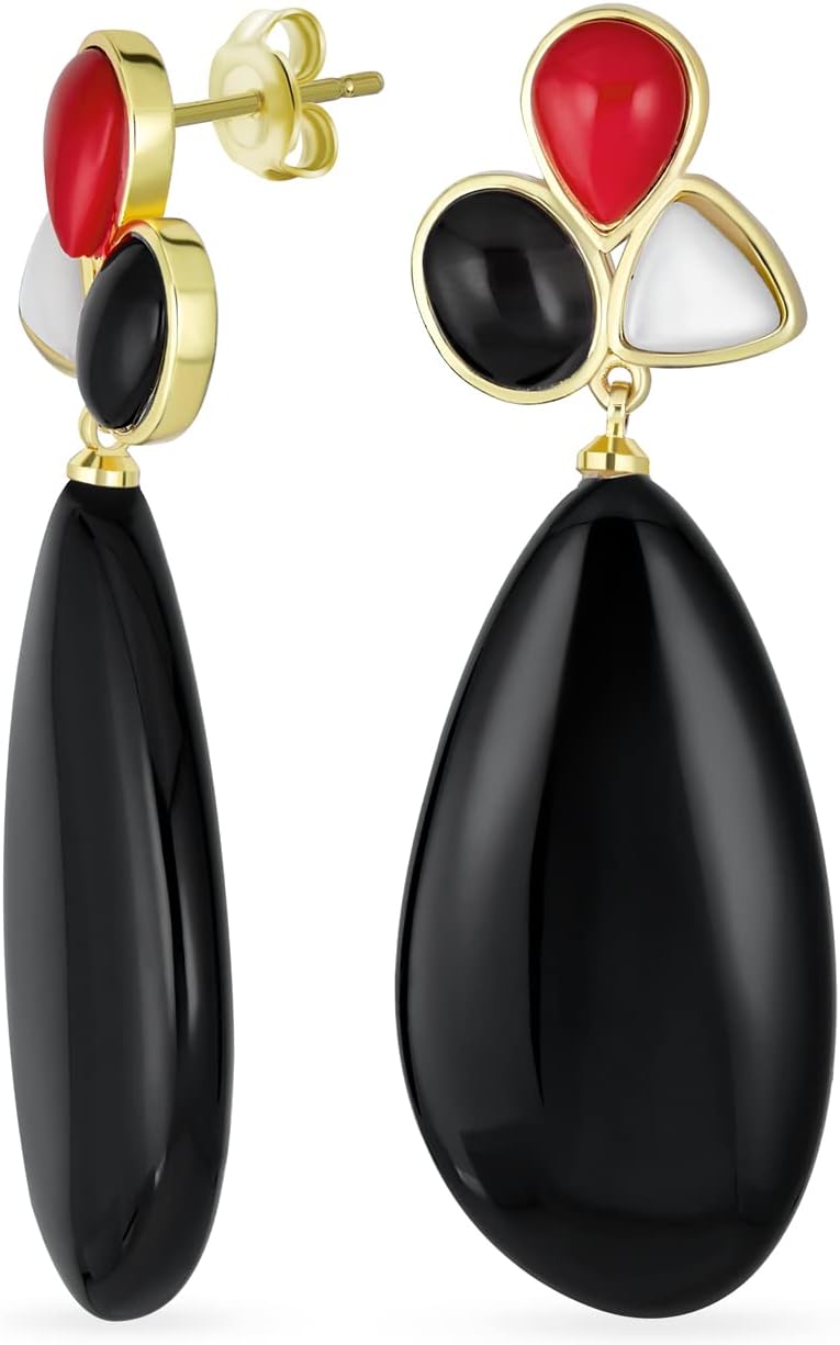 Enhance your style with these vibrant dangle earrings. Featuring elongated teardrops crafted from radiant gemstones and sparkling CZ.