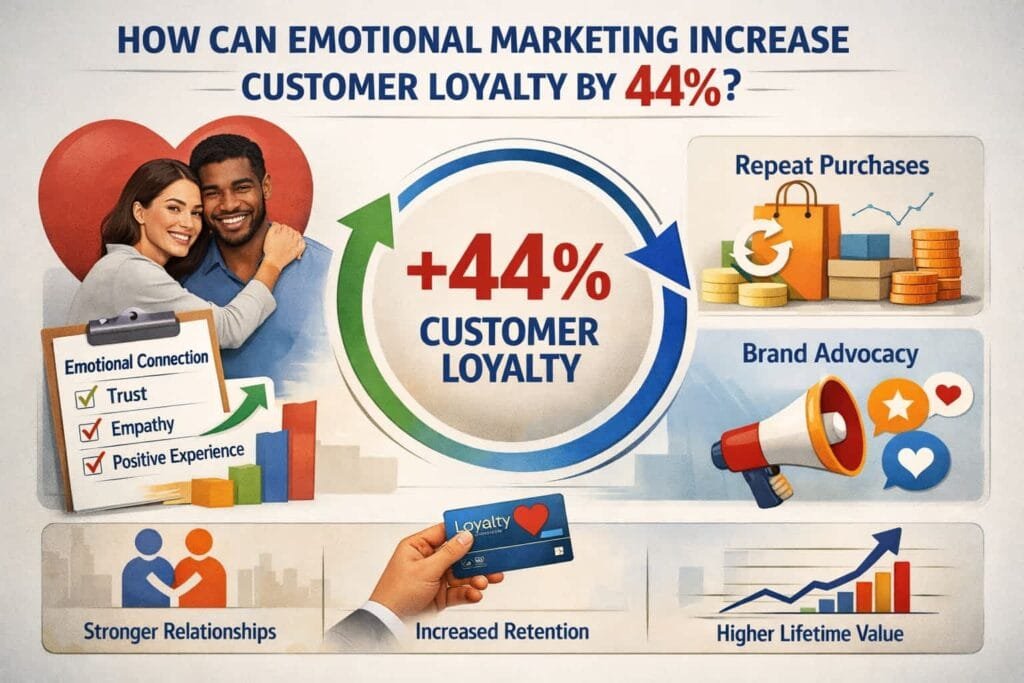 Emotional marketing can boost customer loyalty by 44%. When brands engage with their customers on an emotional level, they create a sense of trust and attachment. This emotional bond encourages customers to remain loyal, even in the face of competitive offers. Loyalty programs, personalized experiences, and consistent emotional messaging can help brands strengthen these bonds and keep customers coming back.