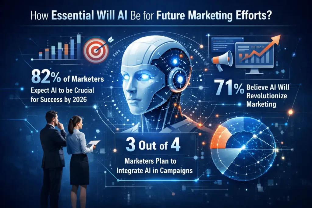 A notable 74% of marketers believe AI will be essential for their future marketing efforts. As AI technologies continue to evolve, they will play a crucial role in shaping the future of marketing. From automation to personalization, AI will be key to delivering effective and impactful marketing strategies.